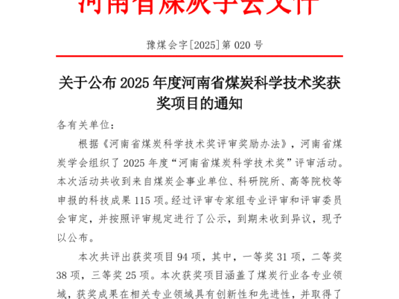 近日,河南省煤炭學(xué)會(huì)公布了2025年度“河南省煤炭科學(xué)技術(shù)獎(jiǎng)”評審結(jié)果。由光力科技牽頭及參與完成的兩項(xiàng)科技成果…